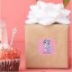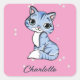 Cute blue cat on pink custom name square sticker
