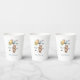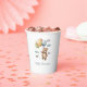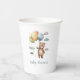 Cute modern timeless baby shower paper cups design featuring a beautiful teddy bear holding balloons , with blue text saying baby shower
