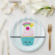 Cute Blue Cupcake with Kawaii Face Paper Plate