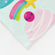 A blanket with a repeating pattern created with a cute blue cupcake with pink frosting and a kawaii smiling face. A cherry on top also has a cute happy face. A shooting star is flying in the air.