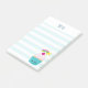 Sticky notes with a light blue and white striped background. Layered over top is a cute blue cupcake with pink frosting and a kawaii smiling face. A cherry on top also has a cute happy face. A shooting star is flying in the air.