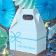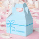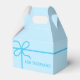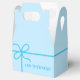 Custom blue favour boxes. Blue ribbon design. Edit name to personalised.