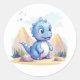 Cute blue dinosaur classic round sticker