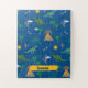 Cute Blue Dinosaur Pattern Wildlife Plants Name Jigsaw Puzzle. Click the edit/personalise it button to customise it with your own name.