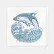 Illustration of cute blue dolphin in retro style with sea waves decoration for everybody who loves lovely dolphins