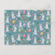 Cute Blue Easter Bunny Rabbit Pattern Holiday Postcard