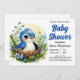 Cute Blue Elegant Bird Boy Baby Shower Invitation