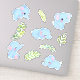 These cute baby elephant stickers adorable blue baby elephants in five different poses. Five choices of tropical botanical leaves perfectly complement each elephant. Perfect for birthday parties, baby showers, or party favours for special occasions.