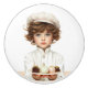 Artsy ceramic knob, with cute little boy handing out handmade gourmet chocolate illustration for kitchen cabinets in mind.