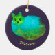 Cute blue fat cat whimsical cat art illustration. For cat lovers everywhere. Cute original illustration watercolor art. Blue and green cat life theme.