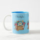 Cute Blue Fluffy Sock Monster Kids Design Two-Tone Coffee Mug