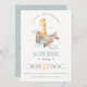 Cute Blue Fly Over Giraffe Animal Plane Birthday Invitation