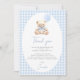 Celebrate in style with our elegant preppy ‘We Can Bearly Wait’ baby boy shower thank you card. This adorable design features a sweet watercolor teddy bear wearing a charming blue bow and holding a balloon, beautifully framed by a classic blue gingham pattern. Perfect for expressing gratitude after your baby shower, this cute and stylish thank you card adds a touch of charm to rustic, boho, or preppy baby shower themes. A timeless keepsake that makes your celebration even more memorable!