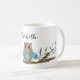 Cute blue heart owl on branch personalised coffee mug.