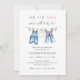 Celebrate your special moment in style with this Blue Jean Baby Gender Reveal Invitation Template. Featuring a charming watercolor clothesline with a denim overall for a boy and a denim dress with a sweet pink bow for a girl, this design perfectly matches the Boy or Girl, what will baby be? theme. The rustic denim details and country charm make it an ideal choice for a denim gender reveal party, He or She celebration, or blue jean baby theme.