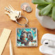 Cute blue kawaii chibi owls together on a tree branch decorate this keychain.