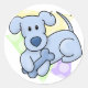Adorable kawaii dog stickers! A blue cartoon puppy is happily chewing on a bone and wagging its tail. Cute pet lover drawing has a polka dot background with a rainbow of colours. Colourful products are perfect for adults or kids!