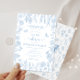 Explore our delightful delicate baby boy shower invitation showcasing a charming blue line art butterflies surrounded by roses and wild flower blooms. This adorable design is perfect for welcoming your little one with joy and elegance inspired by chinoiserie and porcelain art.