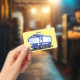 Cute blue modern bus cartoon illustration ID badge