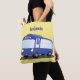 Cute blue modern bus cartoon illustration tote bag