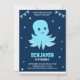 Invite your guests with this cute birthday party invitation featuring an adorable little octopus with vibrant elements against a navy blue background. Simply add your event details on this easy-to-use template to make it a one-of-a-kind invitation. Flip the card over to reveal a grey and white stripes pattern on the back of the card.