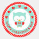 Cute Blue Owl and Hearts Valentine's Day Classic Round Sticker
