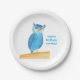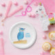 Cute Blue Owl Personalised Paper Plates, Birthday Plate