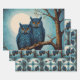 Cute blue Pair of Owls sitting on a branch Wrapping Paper Sheet