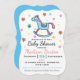 Cute Blue & Pink Rocking Horse Baby Shower Invitation