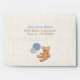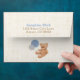Use this cute blue buffalo plaid and teddy bear envelope with your matching blue teddy bear baby shower invitations! Return address is customisable and printed on the back upper flap. The inside of the envelope is the blue buffalo plaid and the outside is a white burlap. The lower back portion features a cute hand drawn teddy bear holding blue balloons.