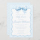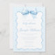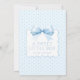 Celebrate the arrival of your little one with our preppy cute baby boy shower invitation. Featuring light baby blue bow on ribbon frame with polkadot pattern in the back, this invitation sets the perfect tone for a spring or summer celebration.