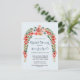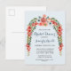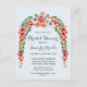 This pretty bridal shower invitation postcard features a sweet floral arch straight from the garden with peachy pink and white flowers with botanical greenery. This postcard for a bridal shower has blue background with light peach coloured polka dots. Perfect for a Spring Bridal Shower or a Summer Bridal Shower.