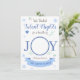 We traded silent nights for a bundle of joy. The photograph is personalizable along with the family name. The design is cute and blue, with little illustrated winter florals and blue snowflakes.