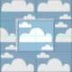 Cute white puffy clouds with grey dotted line edges over a light sky blue background.