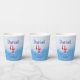 Fun kids party paper cups with fluffy clouds floating in a beautiful blue sky. Perfect for fun in the sun. Add your personal message to bring some added fun to the table. Perfect for kids parties.