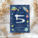 Celebrate your little one’s 5th birthday with this fun space astronaut alien invitation! Featuring a navy background with playful monster aliens, stars, and rockets along the border, plus a matching alien pattern on the back. Easily personalize with your party details and edit age if necessary. The perfect galaxy-themed invitation for your space-loving birthday boy!