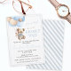 Explore our charming baby boy shower invitations with an adorable watercolor bear holding blue balloons theme. Dive into the cuteness of these invites, perfect for celebrating the arrival of your little one.