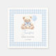 Elevate the charm of your classic preppy 'We can bearly wait' themed baby boy shower with these sophisticated and charming paper napkins. Adorned with a cute teddy bear wearing blue bow, holding blue balloon and surrounded by blue gingham pattern, these adorable napkins bring an added touch of elegance to your celebration.