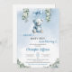 Cute blue teddy bear eucalyptus boy Baby Shower Invitation