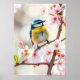 Cute Blue Tit Bird on Spring Blooming Apple Tree Poster