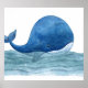 Ocean's grace: Watercolor illustration of a magnificent blue whale. Capturing marine majesty.
