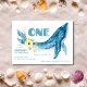 Elegant, ocean themed birthday party invitations featuring a painted watercolor whale adorned with yellow flowers and green leaves on white background. Personalise the cute whale birthday party invitations by adding the birthday girl or boy's name and party details.