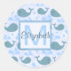 Cute Blue Whales Pattern Monogram Classic Round Sticker