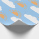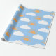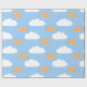Cute blue white orange sunshine and clouds sky wrapping paper