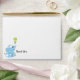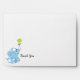 Adorable blue polka dot elephant holding a green flower baby shower thank you envelope.