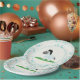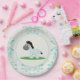 Celebrate your upcoming arrival with these party paper plates. This design features a blue baby zebra with a floral decorative background in colours of teal and light blue.