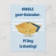 Postcard with a smiling, nearly-whole blueberry pie cartoon illustration. The numbers for Pi are visible for several decimal places. This postcard lets everyone know that Pi Day is coming. Give people time to grab their favourite calculator, buy some extra flour, and choose the perfect pie recipe.