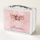 Cute Blush Pink Kitty Monogram School Metal Lunch Box