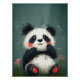 A charming digital painting of an adorable panda with rosy cheeks, sitting happily against a textured green background. The panda's soft fur, expressive eyes, and playful pose add a warm and cheerful touch to the artwork. Perfect for panda lovers and digital art enthusiasts.