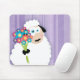 Cute Blushing Sheep Holding Flowers Novelty Mouse Pad